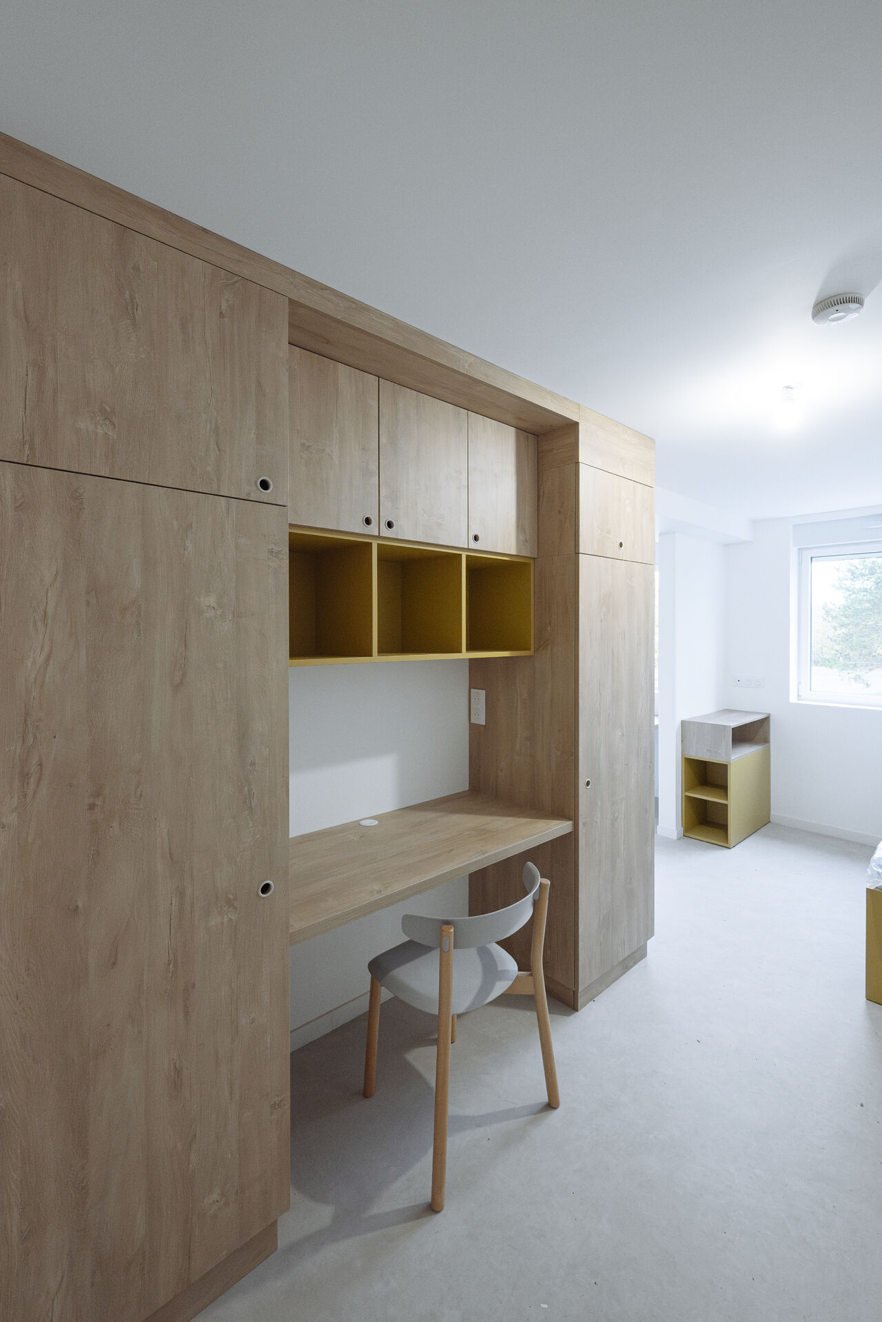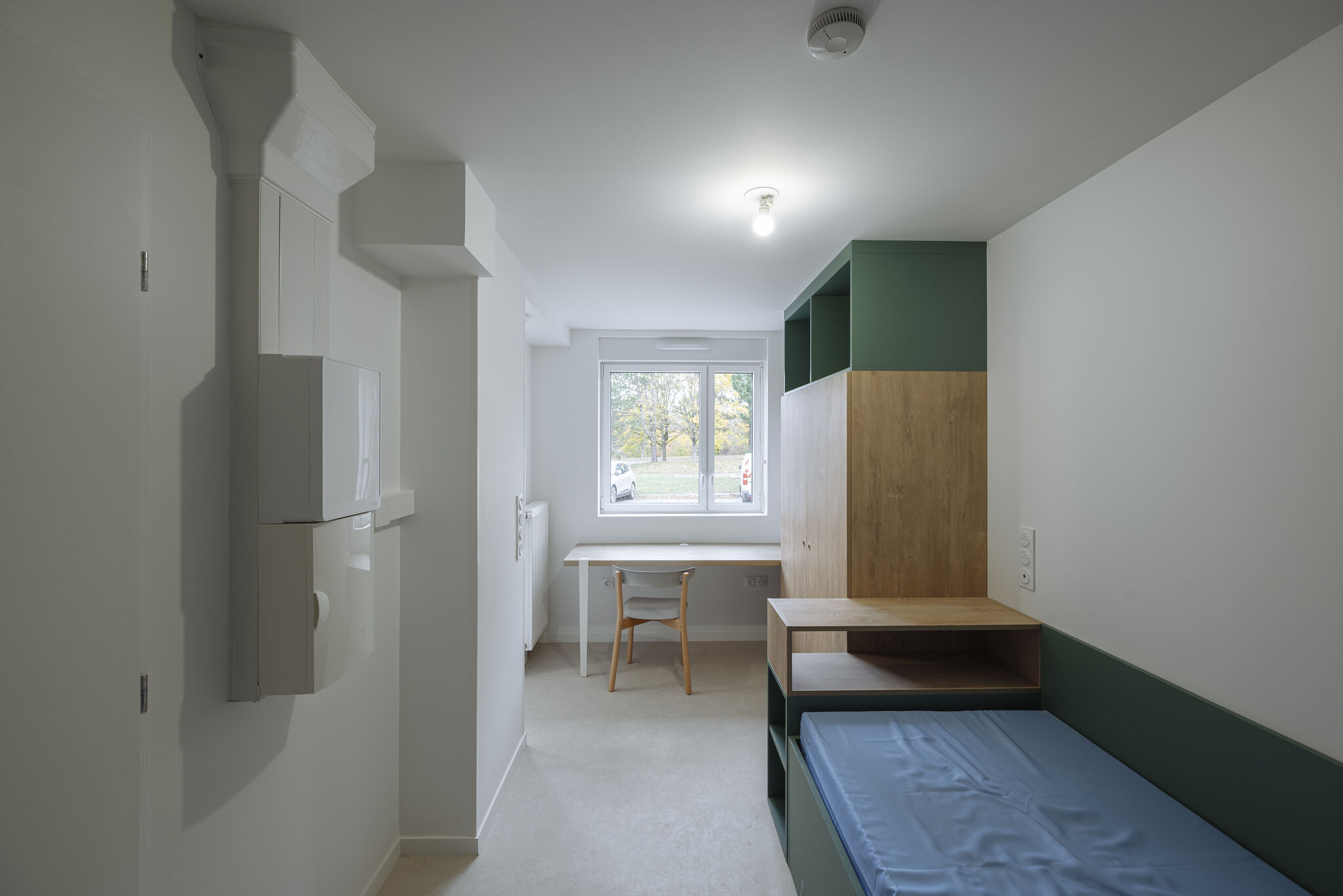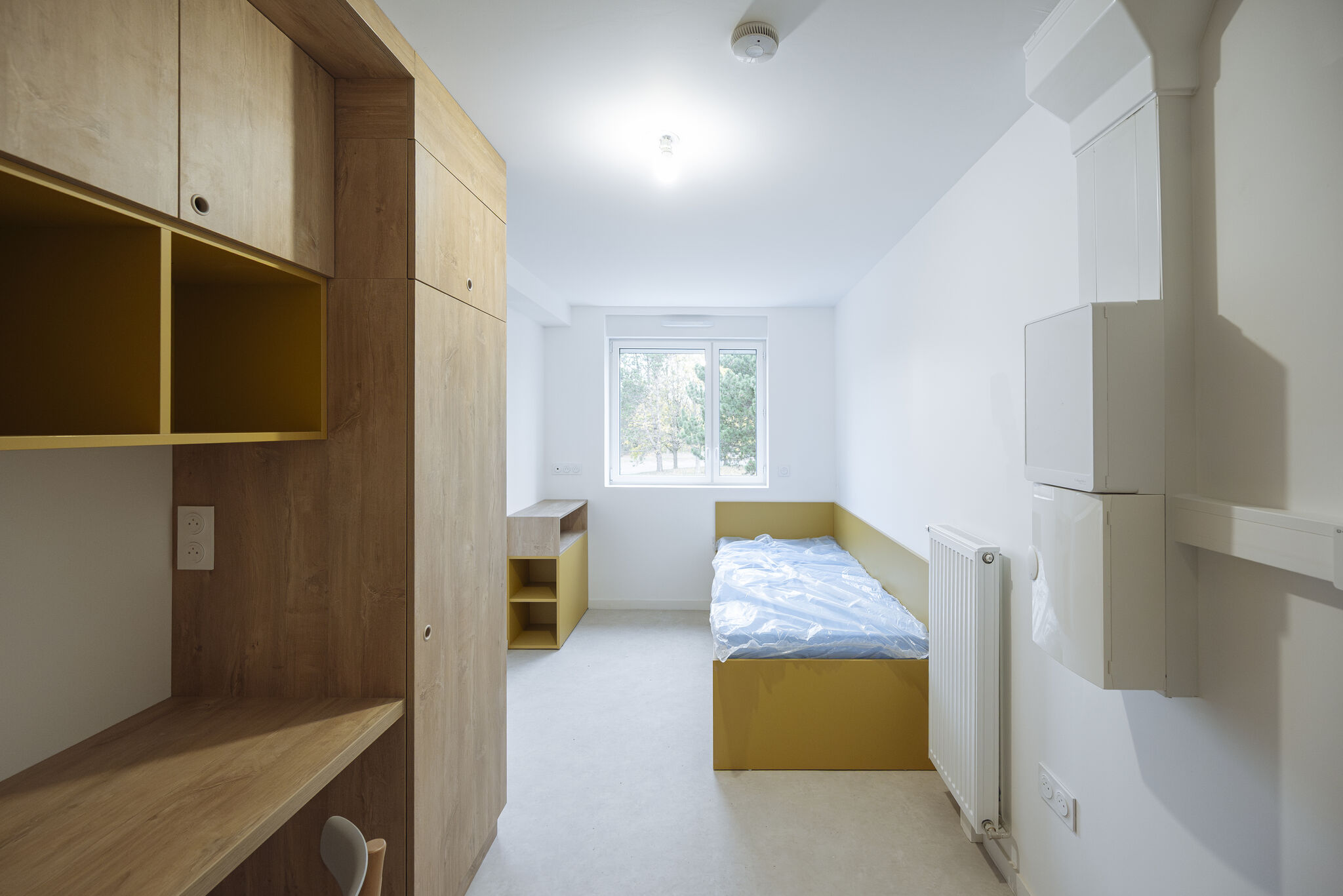 Aménagement complet de 94 chambres et des espaces communs de la résidence étudiante IMAGIN’ERDRE. Un mobilier conçu pour allier robustesse, confort et fonctionnalité, tout en répondant aux attentes spécifiques du cadre de vie étudiant.