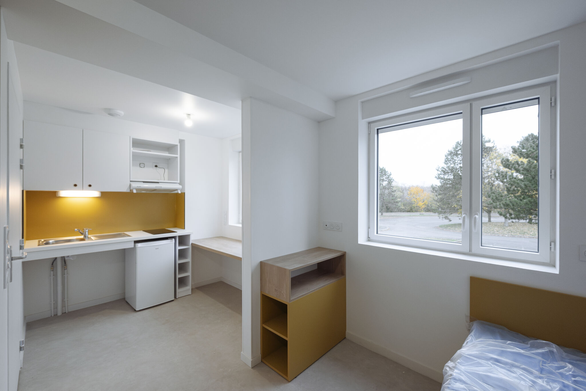 Aménagement complet d’une résidence étudiante neuve comprenant 121 logements. Réalisation et installation de mobilier sur mesure type gamme lagune pour les chambres, espaces communes et zones de circulation. Le projet a nécessité une coordination étroite avec la maîtrise d’œuvre pour respecter les délais et les exigences techniques propres au logements étudiant.